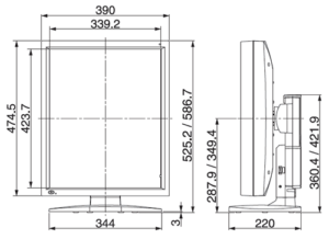 | Physical Characteristics | Dimensions (WxHxD) | Landscape : 475 mm x 483 / 544 mm x 220 mm Portrait : 390 mm x 525 / 587 mm x 220 mm |
